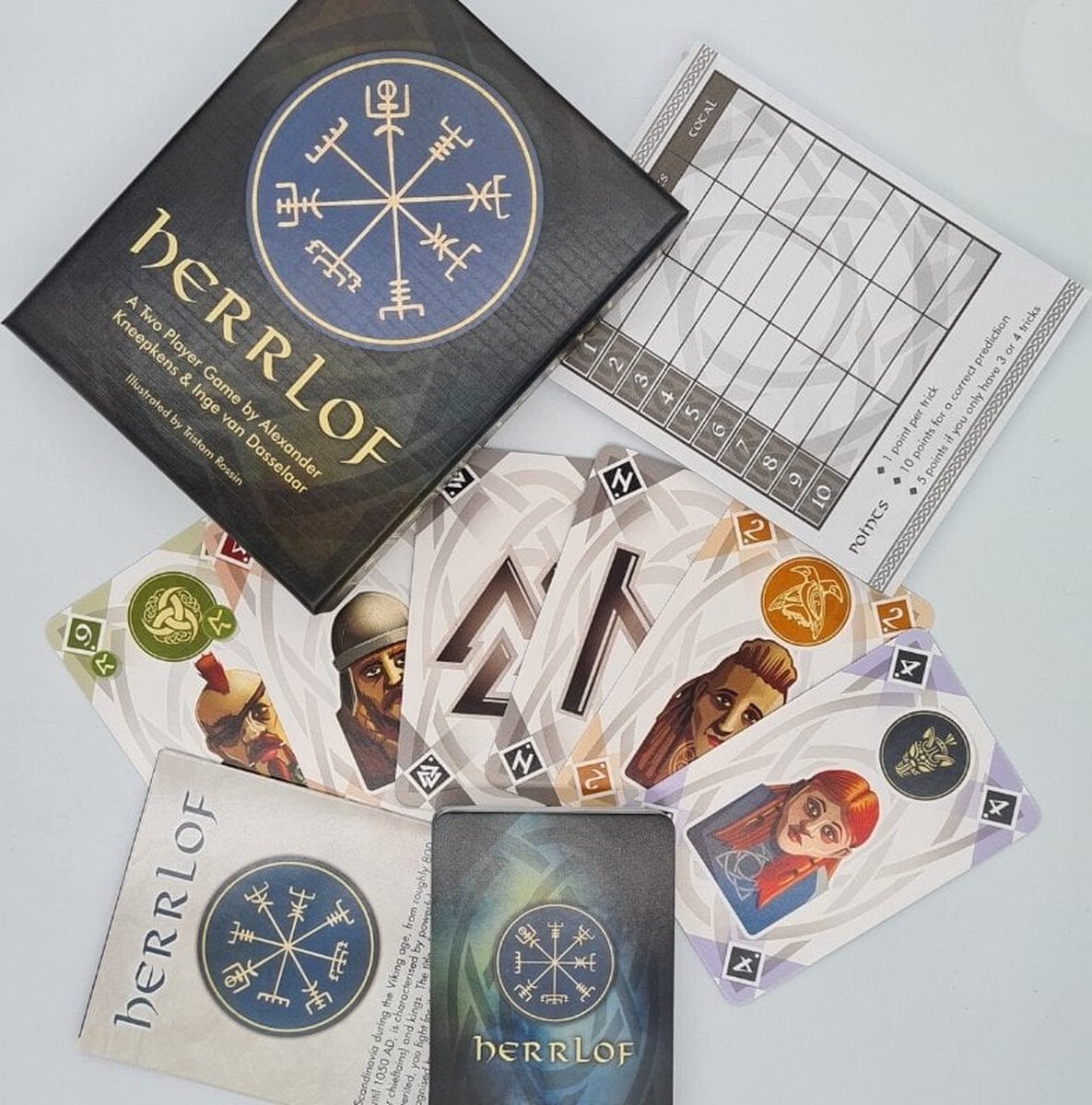 Herrlof is een tweepersoons slagen kaartspel dat zich af speelt in de Vikingtijd. Spelers hebben als doel om de ‘herrlof’ te winnen: een teken van eer en overwinning. Beide spelers krijgen 15 kaarten waarmee zij strijden om 15 slagen, aan het begin van elke ronde voorspel je hoeveel slagen je verwacht te halen. Maar dit doe je zonder dat je tegenstander het ziet. Daarmee is het een tactisch spel, want je wilt precies het juiste aantal slagen winnen en daarmee bonuspunten verdienen.