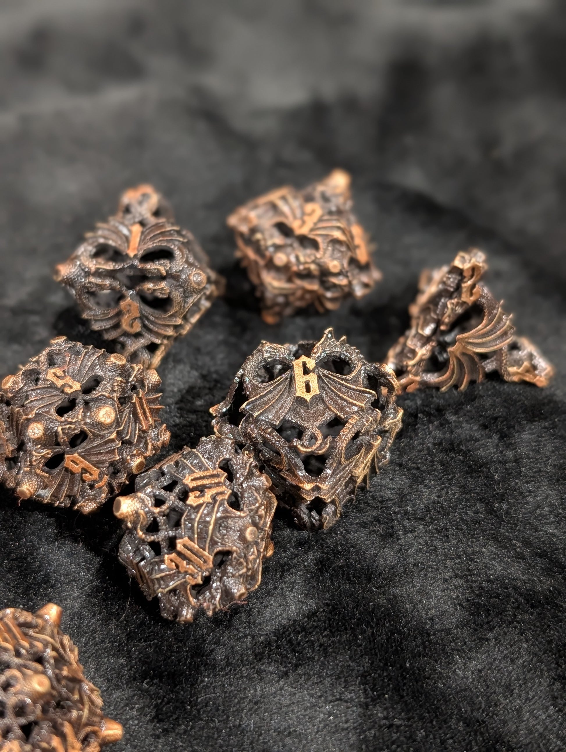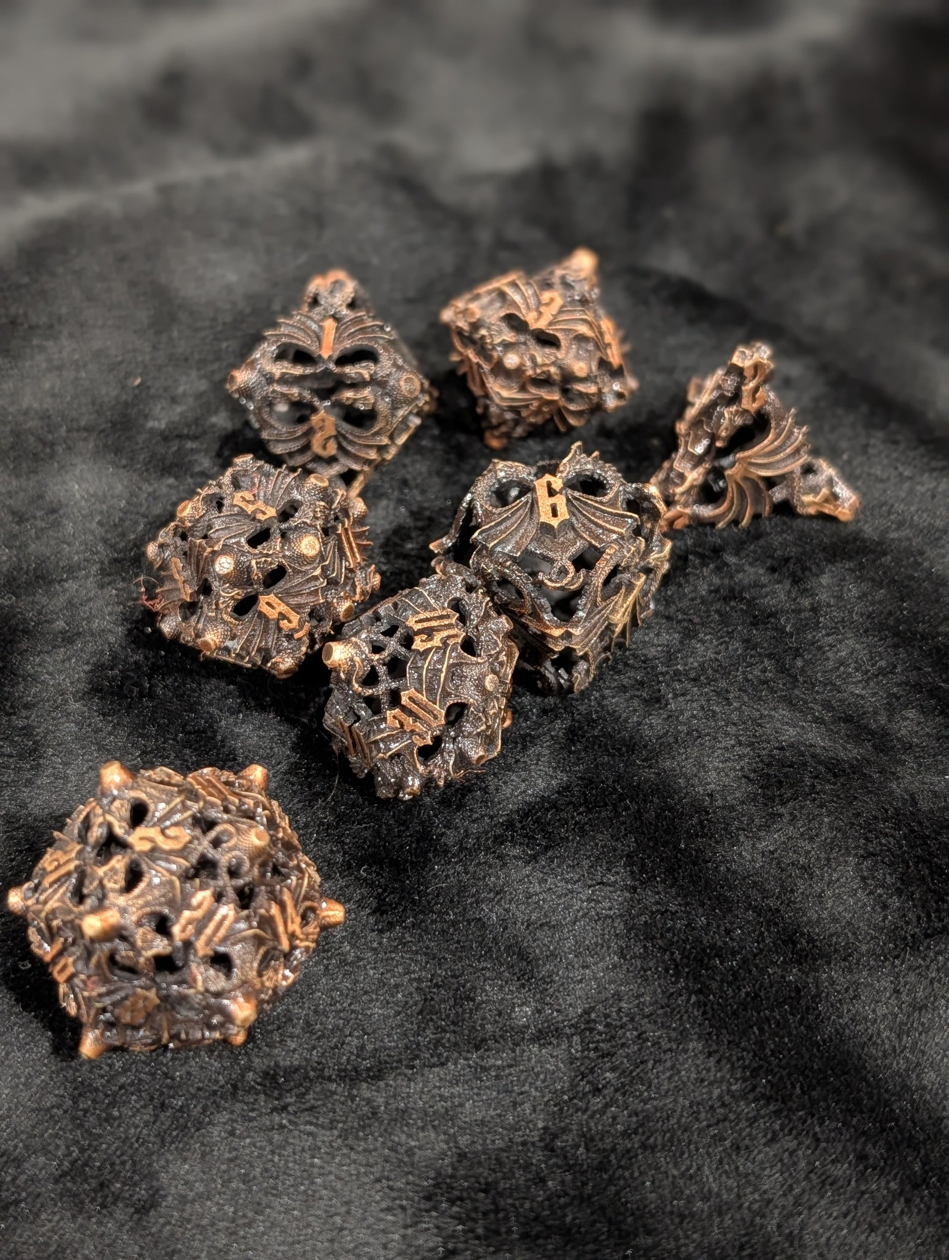 Sterk, stijlvol en opvallend de Hollow Metal Dice Set combineert de kracht van metaal met een uniek opengewerkt design. De holle structuur maakt ze lichter dan gewone metalen dobbelstenen, maar ze behouden dat kenmerkende, bevredigende clink bij elke worp.