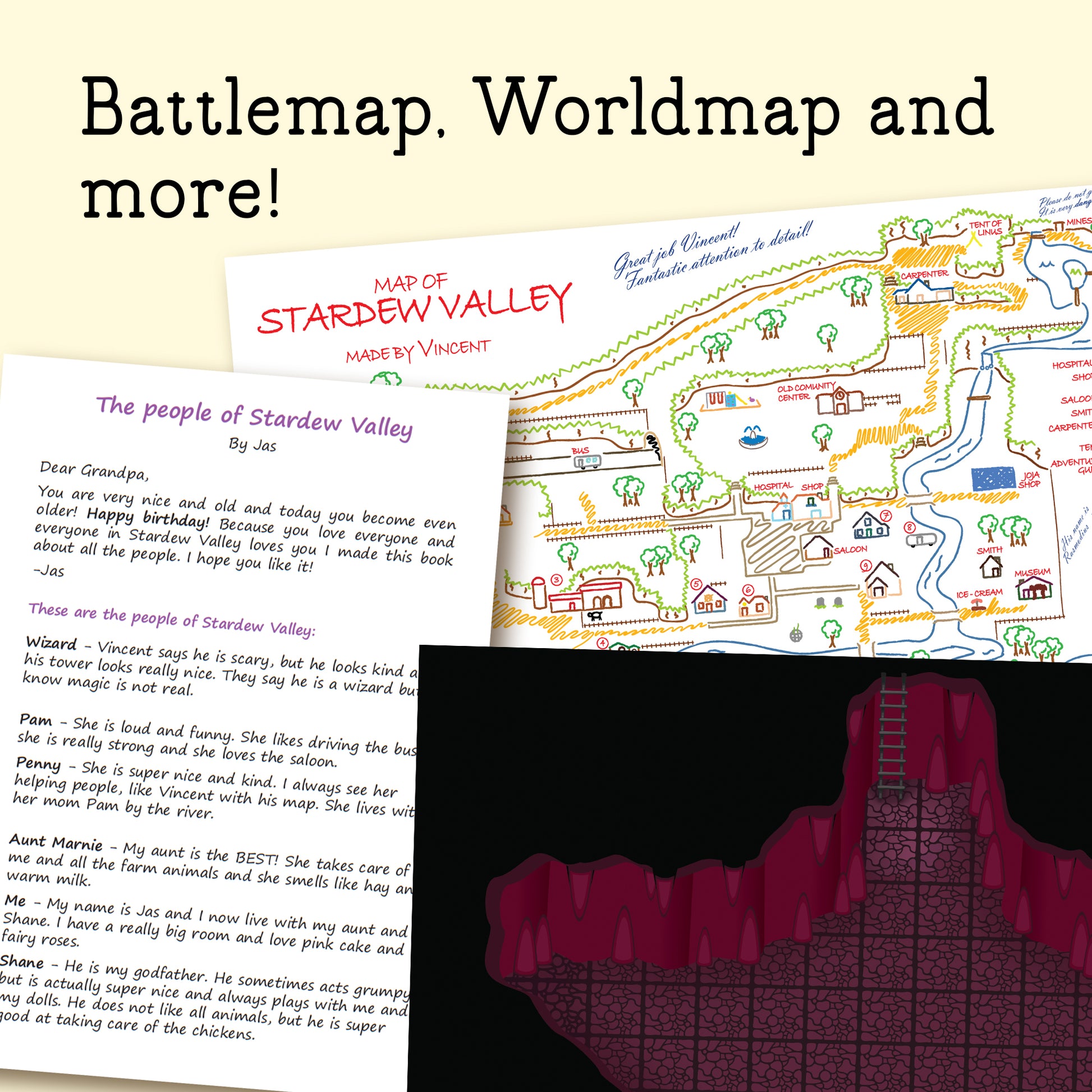 – Battle map (print-ready and digital for online play)