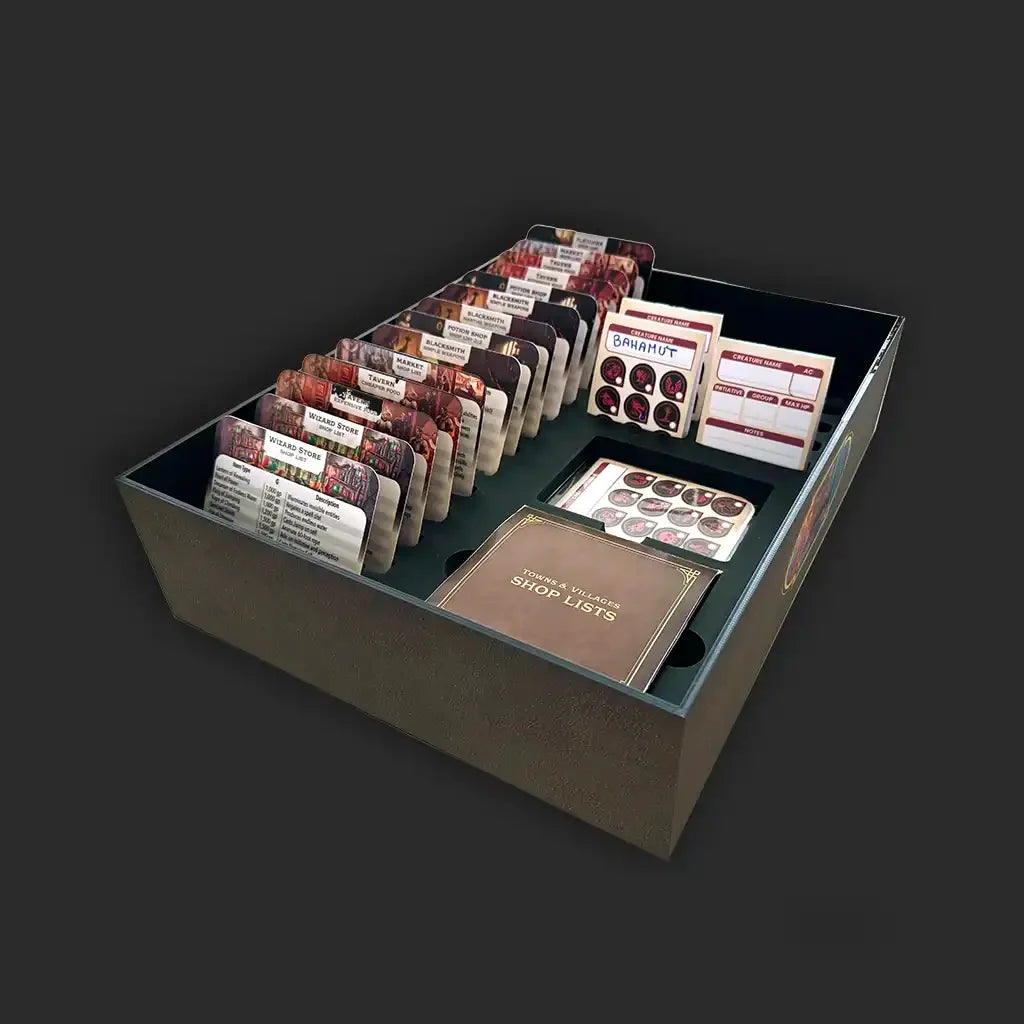This Worlds at a Glance box set by Game Master Worlds is packed with practical DM tools to help you create immersive towns and villages for your D&D campaign. Designed by experienced DMs, it includes everything you need to instantly describe, customize, and run vibrant towns, villages, shops, and NPCs.